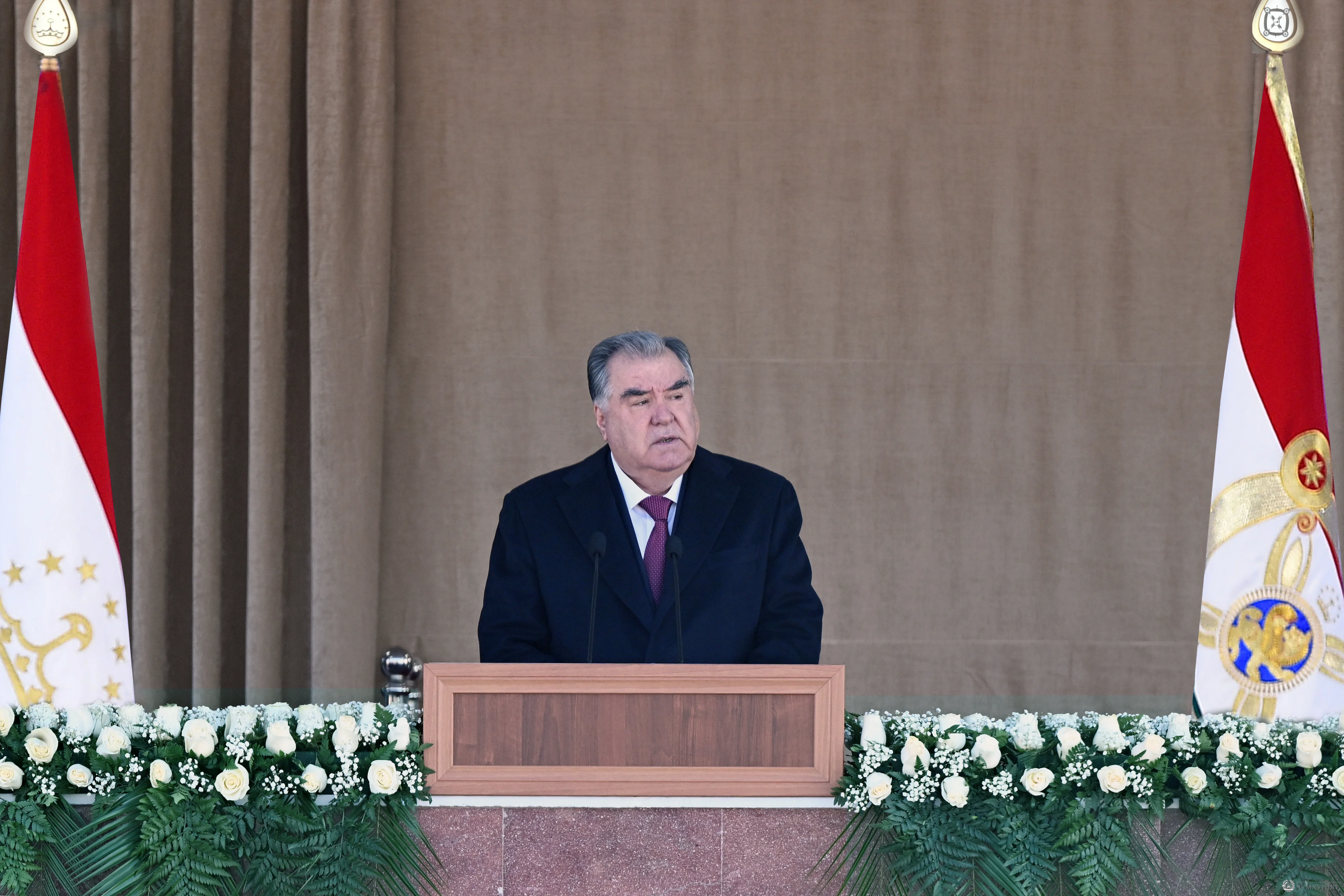 Суханронии Президенти Ҷумҳурии Тоҷикистон, Сарфармондеҳи Олии Қувваҳои Мусаллаҳ муҳтарам Эмомалӣ Раҳмон дар паради ҳарбӣ ба муносибати 32-юмин солгарди таъсисёбии Қувваҳои Мусаллаҳи Ҷумҳурии Тоҷикистон, шаҳри Душанбе, 22-юми феврали соли 2025