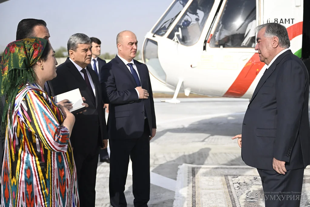Дар ноҳияи Тоҷикобод Сарвари давлат муҳтарам Эмомалӣ Раҳмонро Раиси Маҷлиси намояндагони Маҷлиси Олии Ҷумҳурии Тоҷикистон Файзалӣ Идизода ва роҳбарони вазорату идораҳои дахлдор ҳамроҳӣ намуданд.