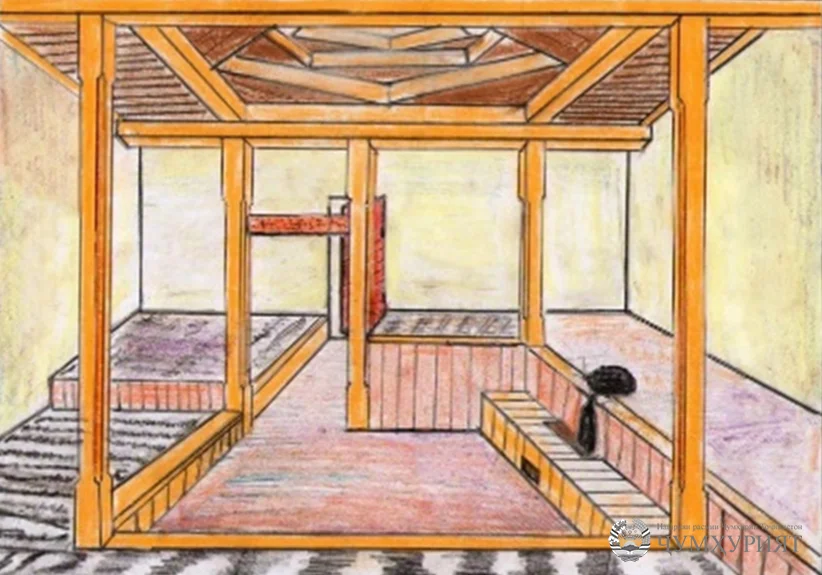 Хонаи асосӣ дорои се дукон («раж», «нех»), пойга, чалак ва дегдон («длдунг», «кицор») буда, панҷ сутун («истин», «стан»)-и даруни хона сақфи чӯбии онро нигоҳ медоранд, ки аз ду тирчӯби амудӣ («тир», «вас», «вус»), тирчӯбҳои мутавозин («дастак», «сипихч») ва чорхона бо равзан («рицн», «рудз») иборат аст. Сутунҳо дар болои се поячӯб («санҷ»), ки дар рафаки дуконҳо ба тарзи уфуқӣ хобанд, қарор доранд. Дар фаҳмиши мардумӣ дуконҳо рамзи се олами табииро ифода мекунанд: наботот, ҳайвонот ва маъданҳо. Ҳар яки онҳо дар забонҳои маҳаллӣ номҳо ва мақоми ба худ хосро доранд, аз қабили дукони калон ё сартакя («луп раж», «дарознех»), дукони поён («паст раж», «барнех») ва шаҳшин – ҷойи нишасти шаҳ ва арус – ё дукони гирд («пут раж», «нехак»). Пойга, ки ҷойи истод ва рақс (дар тӯйҳо) аст, рамзи Замин ва чалаку дегдон (ҷойи тайёр намудани хӯрок) мафҳуми оташу нурро ифода мекунанд.