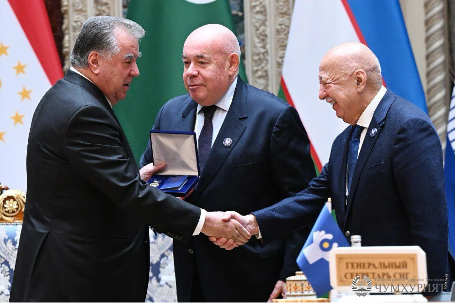 Дар ин росто, Агентии иттилоотии “Караван инфо” менависад, ки пас аз имзои санадҳо Михаил Швидкой, ҳамраиси Раёсати Хазинаи байнидавлатии ҳамкории башардӯстонаи (ХБҲБ) кишварҳои узви ИДМ, узви Шурои ИДМ оид ба ҳамкориҳои башардӯстона, намояндаи махсуси Президенти Федератсияи Русия оид ба ҳамкориҳои байналмилалии башардӯстона қарори Раёсати Хазинаи байнидавлатии ҳамкории башардӯстонаи кишварҳои иштирокдори ИДМ-ро дар бораи сарфароз гардондани Раиси Шурои сарварони давлатҳои аъзои Иттиҳоди Давлатҳои Мустақил, Президенти Ҷумҳурии Тоҷикистон муҳтарам Эмомалӣ Раҳмон бо медали “Барои хизматҳо дар рушди ҳамкориҳои башардӯстона” эълон намуд.