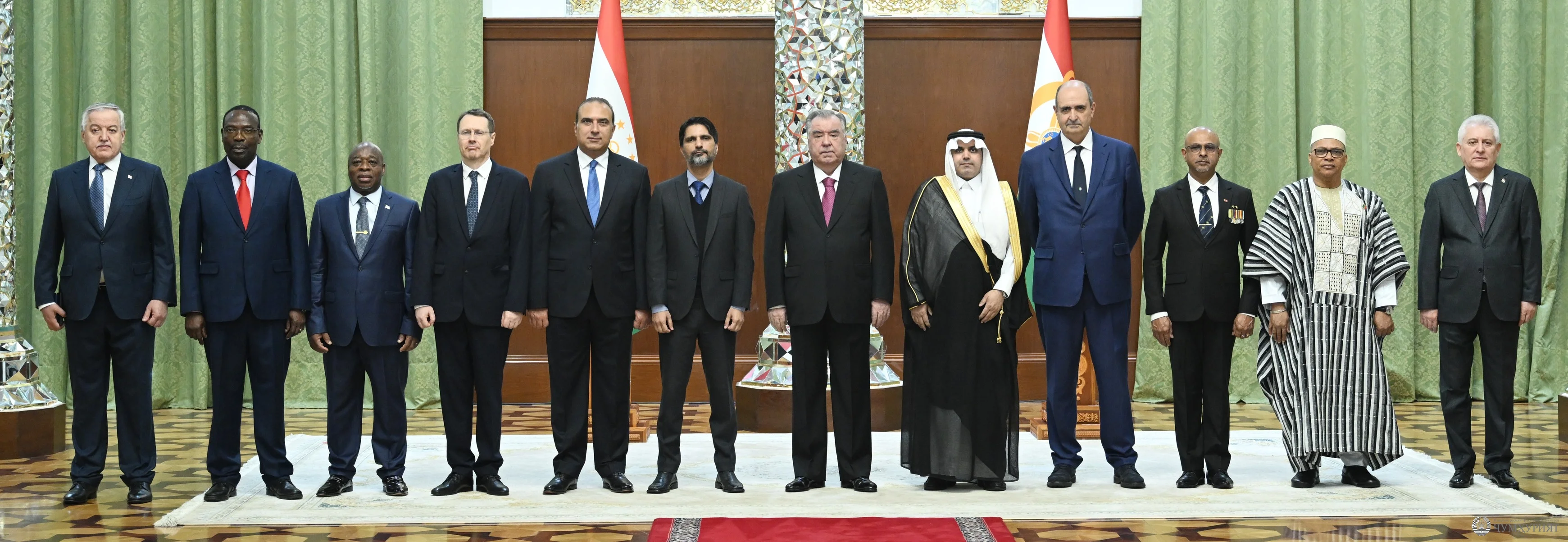 Ҳангоми маросим, ки дар Қасри миллат доир шуд, ба Президенти кишвар муҳтарам Эмомалӣ Раҳмон сафирони фавқулода ва мухтори Ҷумҳурии Исломии Покистон Ирфон Аҳмед, Подшоҳии Арабистони Саудӣ Холид ибни Абдулло аш-Шамронӣ, Ҷумҳурии Арабии Миср Тамер Фатҳӣ Абдуссалом Ҳаммад, Ҷумҳурии Италия Гвидо Де Санктис, Шоҳигарии Белгия Эрик Де Майер, Ҷумҳурии Демократии Сотсиалистии Шри-Ланка Фред Сеневиратне, Ҷумҳурии Зимбабве Грей Маронгве, Ҷумҳурии Мали Сейду Камиссоко ва Гвинеяи Экваторӣ Ндонг Айекаба Лусиано Нкого эътимодномаҳои худро бо паёму дуруд аз роҳбарияти кишварҳояшон тақдим карданд.