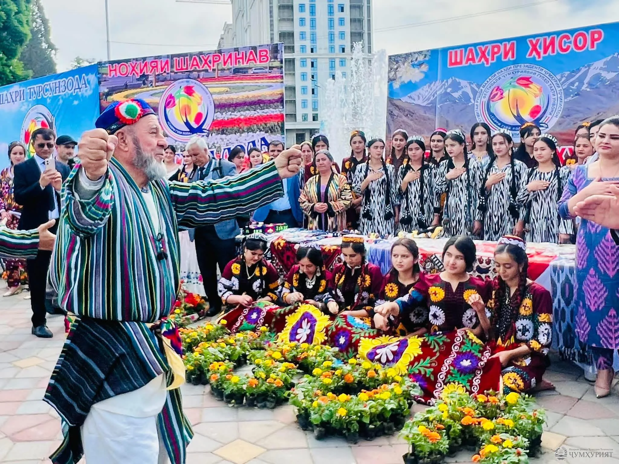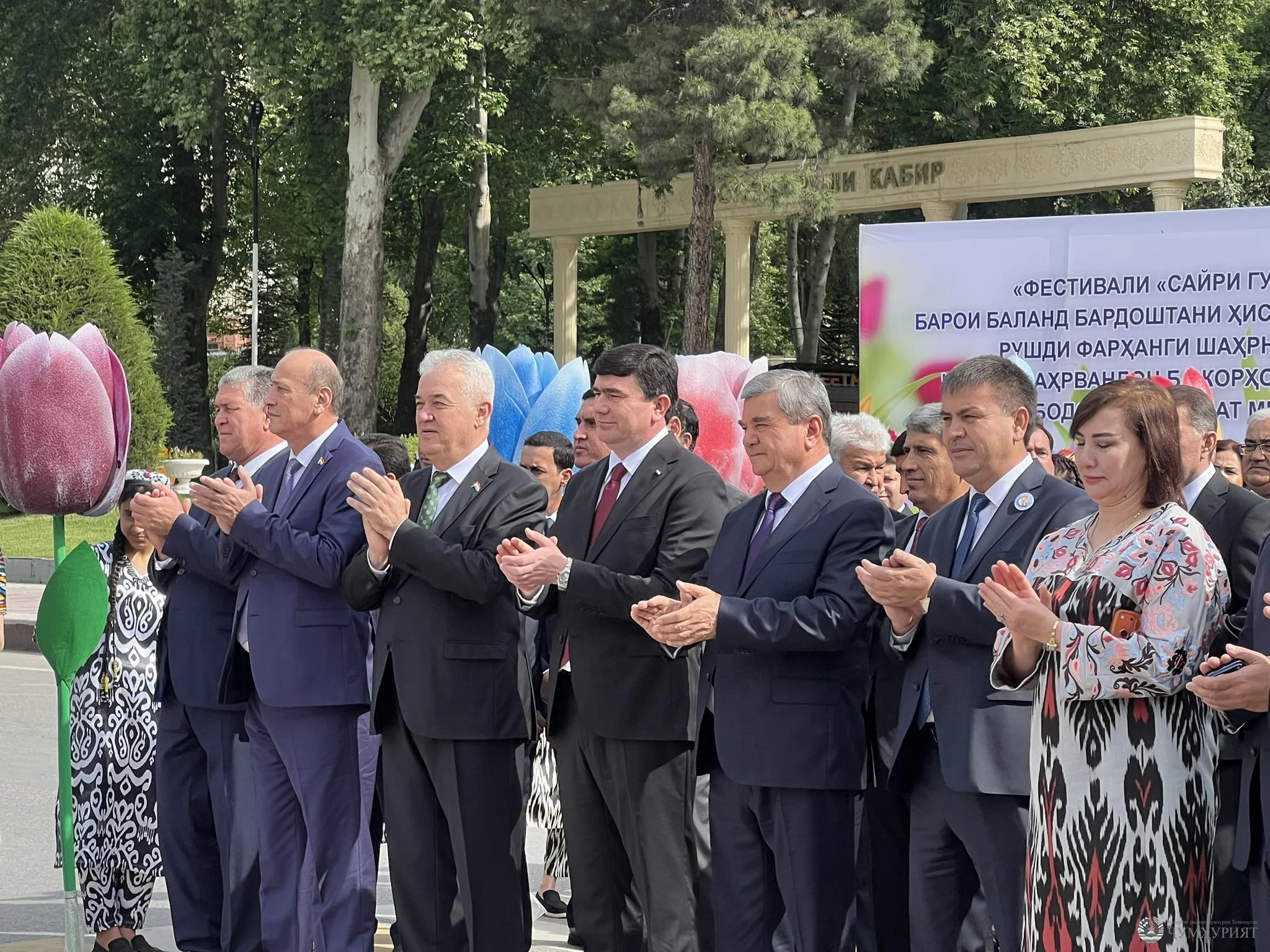 Муовини Сарвазири ҷумҳурӣ Сулаймон Зиёзода, намояндагони ниҳодҳои давлатӣ, вилоятҳо, шаҳру ноҳияҳо, нахуст, намоиши гулҳо ва ҳунарҳои мардумиро, ки дар саҳни Театр ташкил шуда буд, тамошо карданд.
